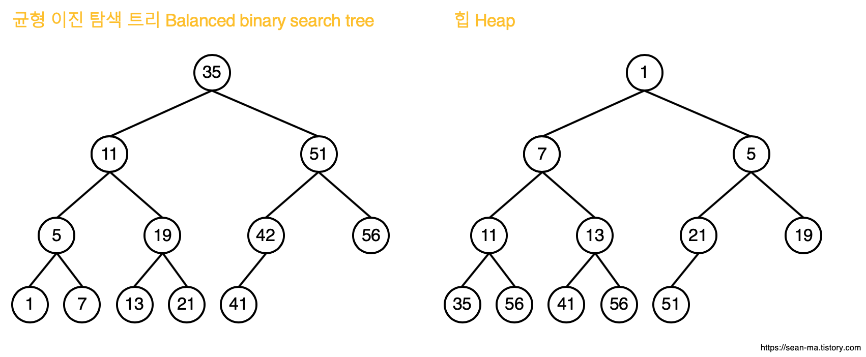 그리고 부모 자식 간의 대소 관계는 정의되어 있으나 형제간의 대소관계는 정의되어 있지 않은 완전 이진 트리 자료구조의 일종을 힙 Heap 이라 합니다.