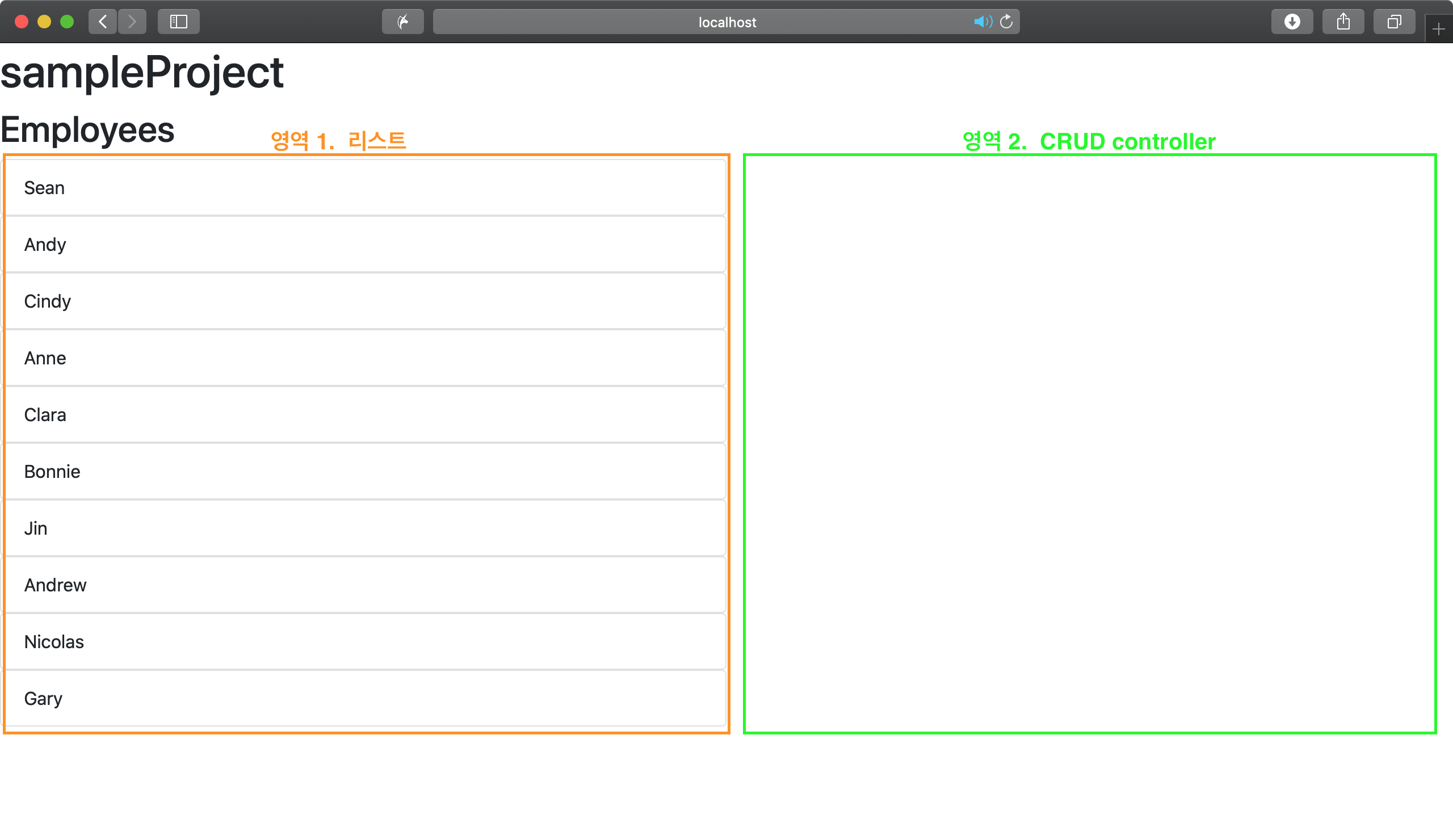페이지 구성을 위와 같이 마쳤다면 선택된 employee를 활용하기 위하여 다음과 같이 리스너를 설정합니다.