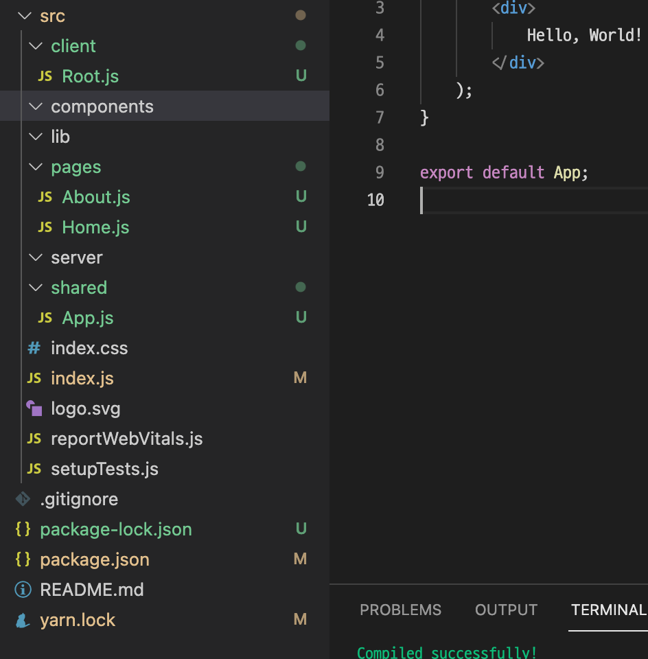프로젝트에서 App.js, App.css, App.test.js 를 삭제하고 다음와 같은 폴더 구조를 만들어 줍니다.