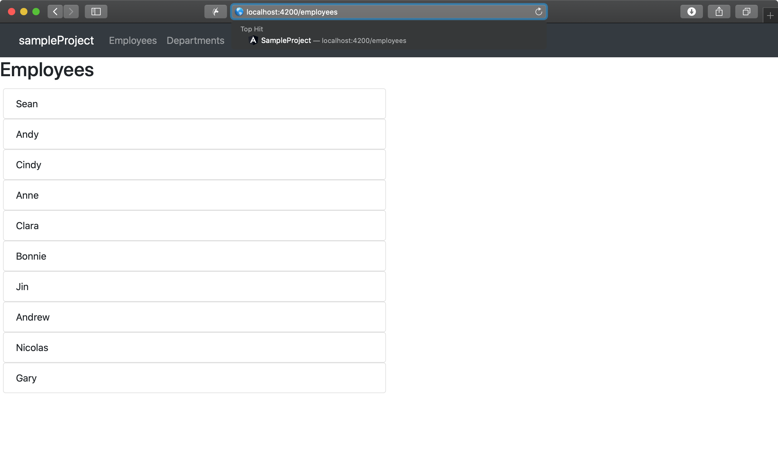 기본 경로(path: '')를 /employees 로 지정해 준 덕에 localhost:4200/ 으로 연결을 시도할 시 자동으로 localhost:4200/employees 로 리다이렉팅 됩니다.
